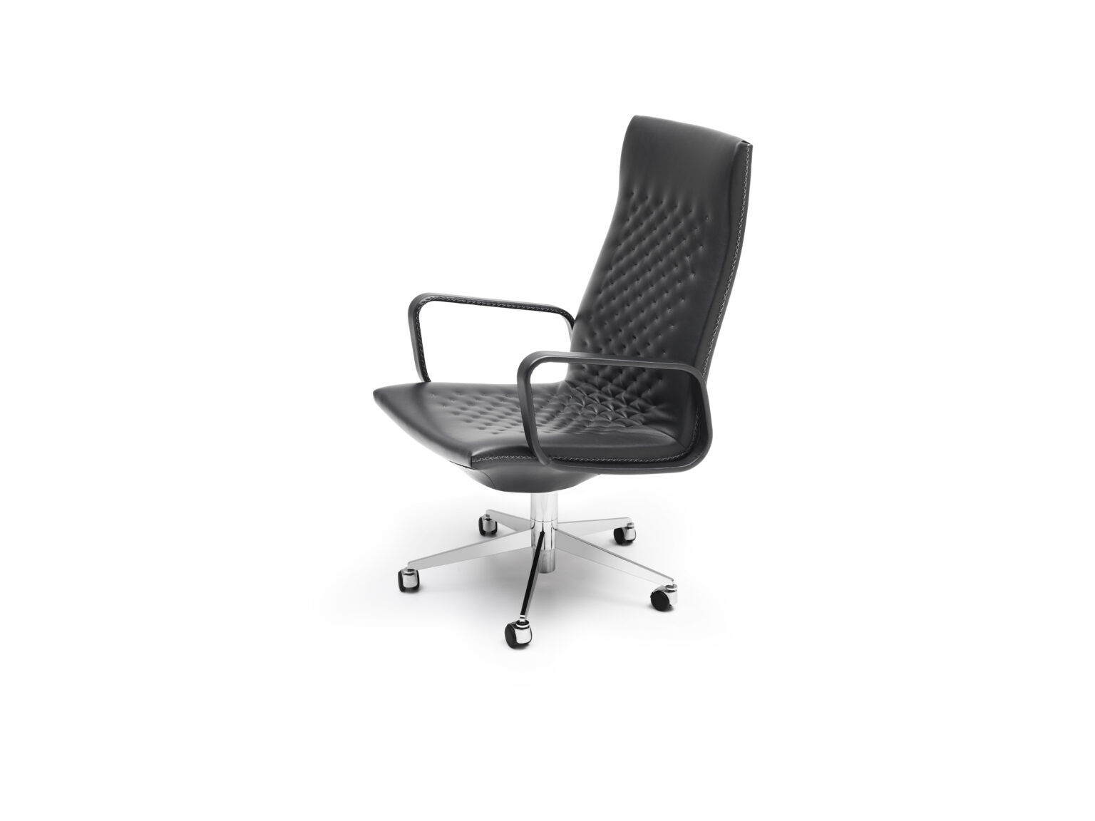 Niezwykle subtelny i elegancki fotel biurowy marki de Sede, to luksus bez utraty funkcjonalności i komfortu. Siedzisko i oparcie są ręcznie pikowane, a po bokach znajduje się ozdobny, rzemieślniczo wykonany szew. Fotel wykończony jest w skórzanej tapicerce z kategorii Select w kolorze 2417 Taupe. Podstawa fotela wykonana jest z polerowanego chromu, z pięcioma czarnymi kółkami z przeznaczeniem zarówno do miękkich jak i twardych posadzek. Fotel posiada możliwość regulacji wysokości i odchylenia oparcia. Zakup fotela możliwy jest po osobistym obejrzeniu mebla, zapraszamy do kontaktu z naszymi doradcami.