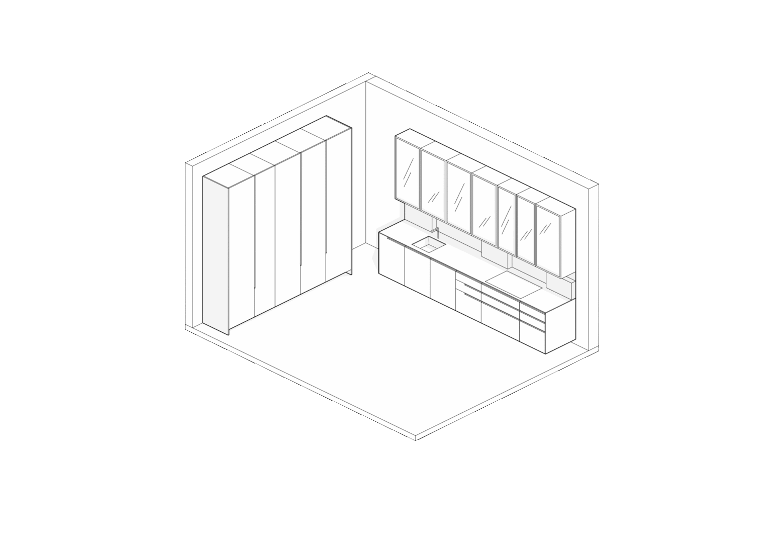 Szafy wysokie: 319 cm x 270 cm Szafy niskie: 391 cm x 84,5 cm