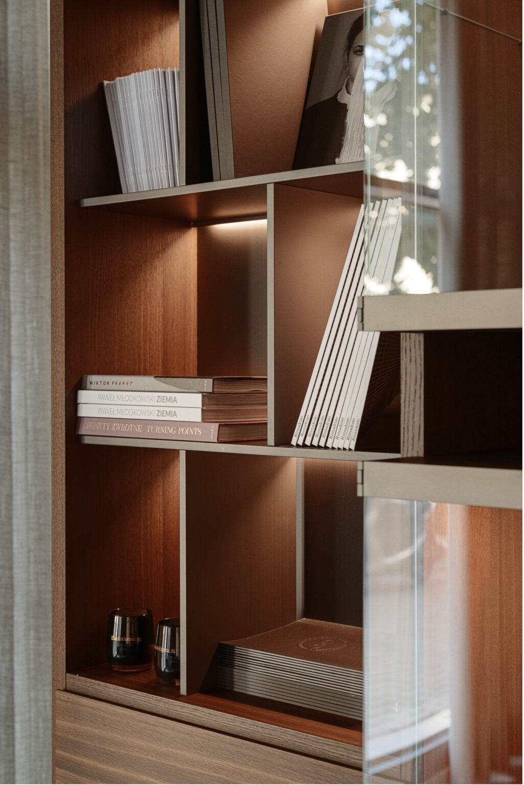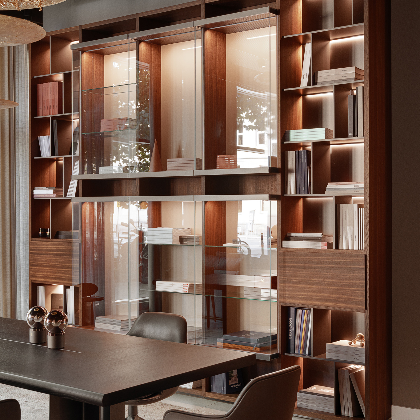 Poliform Wall System to kultowy system mebli dziennych, łączący nowoczesny design z funkcjonalnością. Bazuje na regale z konstrukcją nośną, który staje się centralnym punktem przestrzeni dziennej. Lekką formę zapewnia smukła struktura zestawiona z półkami i drzwiami, tworząc elegancką, wyrafinowaną kompozycję. Prezentowana konfiguracja została wykonana w wykończeniu Spessart Oak, z panelami tylnymi w wariancie Spessart Oak / Glossy Corda 26 / Metallic Lacquer Bronzo 23. Zakup regału możliwy jest po osobistym obejrzeniu mebla, zapraszamy do kontaktu z naszymi doradcami.